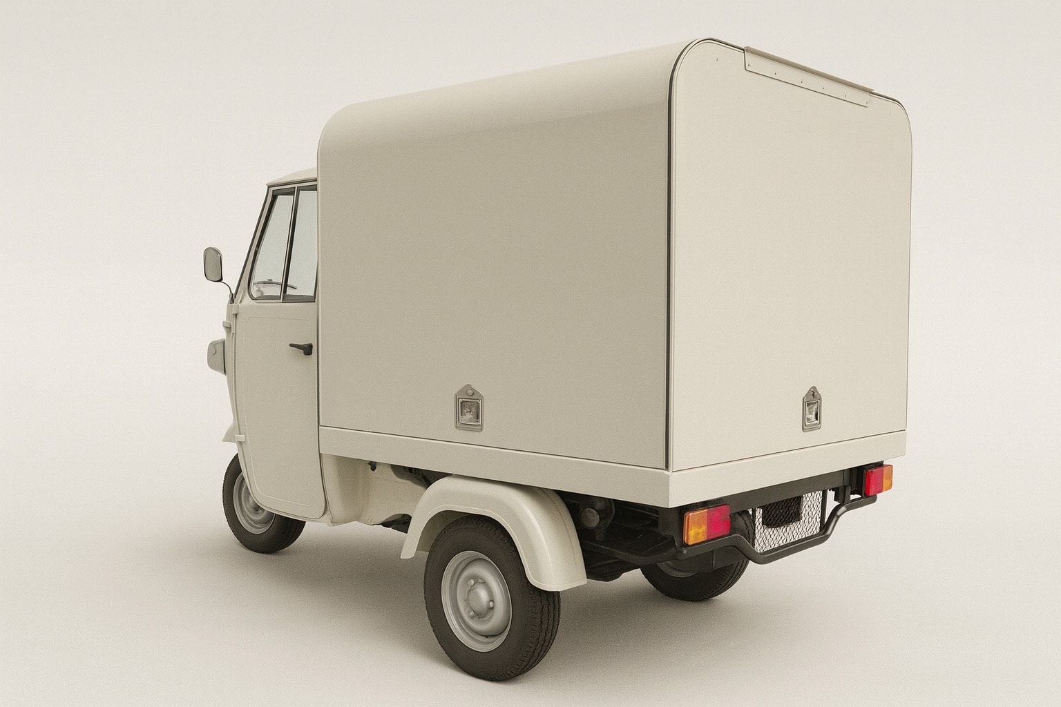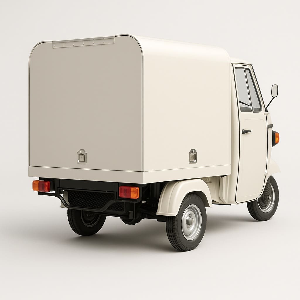 Piaggio Ape 230 / diesel / Electric: 118” L x 60” W x 74” H Usable rear box area: 56” L x 54” W